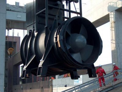 This picture was sourced from the internet. It’s a picture of the world’s largest water pump. Built by Nijhuis, and called the Nijhuis HP1 4000.340. This pump has a capacity of 60,000 liters per second. And the motor that operates the pump draws 4,000KW and produces 5,364 HP. The reason for showing you this pump is to illustrate what the tidal generators for the San Francisco bay would look like without the funnel inlets.