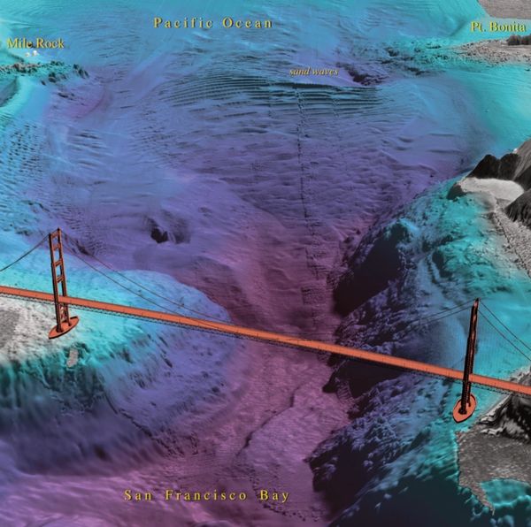 Topographical maps courtesy of USGS Pacific Coastal and Marine Science Center. These images were comprised over a period of 44 days by the Seafloor Mapping Lab at California State University Monterey Bay. Detailed imaging consisted of 1,138 track lines and 1.1 Billion sounding. The photographer was Peter Dartnell.