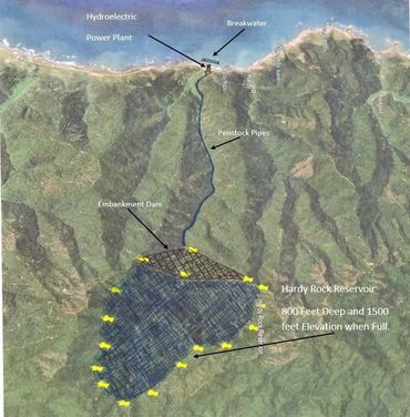 I have researched a suitable area above San Francisco CA just north of Fort Bragg. The area is known as Hardy Rock. Hardy Rock would be an ideal location for a Pumped Hydroelectric Storage location. It lies directly on the coast and two miles inland is a bowl-shaped mountain suitable for a reservoir and earthen dam. The peaks of the mountain are 1700 to 2100 feet with deep ravines. The area between the proposed earth dam and coastline has only one inhabitant. If a dam were to be built, the resident would be asked to relocate or assume the risk of remaining. All areas between the dam and coast should be void of human inhabitants and left in their natural state. Google earth was used to assess this location. Now that we found a suitable location for the Pumped Hydroelectric Storage facility, extensive geological studies will be necessary before construction begins. When all studies are complete (environmental and geological) work can begin.